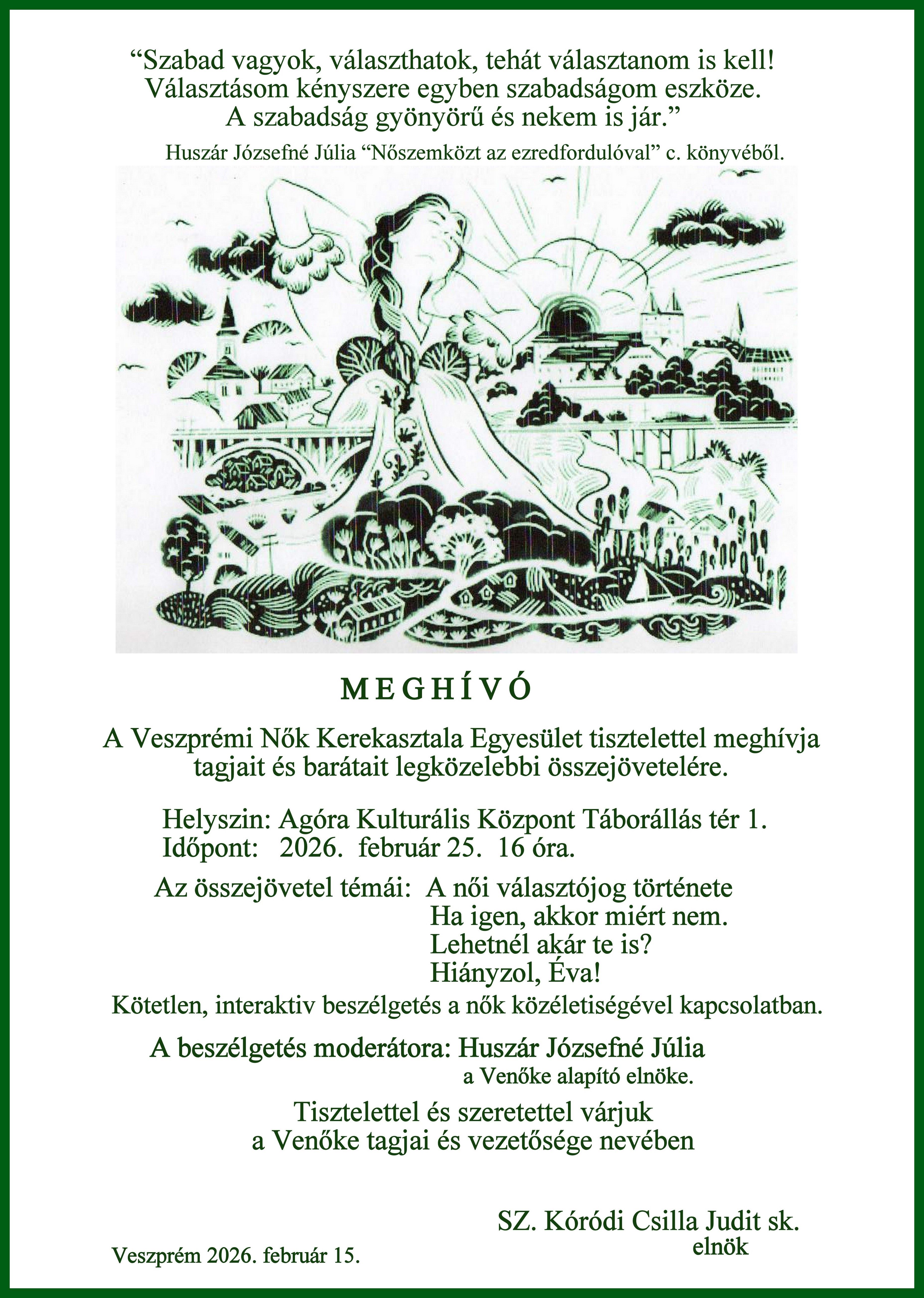 Ez a találkozó azért is különleges, mert kiemelt vendégünk a VENŐKE alapító tagja, Huszár Józsefné Júlia lesz, beszélgető társa Herth Viktória. A jelen lévő vendégeknek garantáltan érdekes, izgalmas beszélgetésben lesz részük.